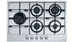 Table de cuisson de 75 cm en inox AISI 304 Finition : Satiné Nombre de feux : 5 Puissance : 1 Feu auxiliaire 1000W 2 Feux semi-rapide 1750W 1 Feu rapide 3000W 1 Feu rapide Triple couronne 3800W Allumage électrique intégré Valve de sécurité Grilles en émail Dimensions hors tout (LxP) : 750x510 mm Dimensions d’encastrement (LxP) : 550x480 mm