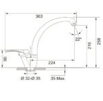 Hauteur sous bec : 216 mm