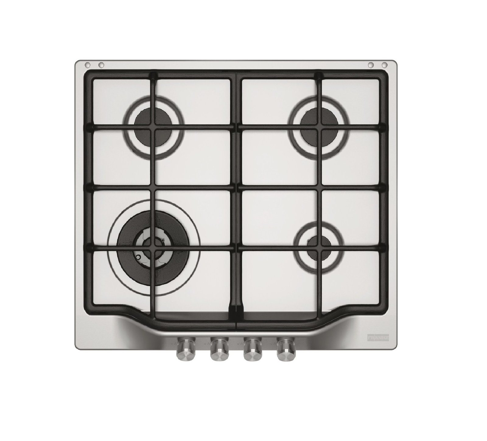 Table de cuisson de 60 cm en inox AISI 304 Finition : Satiné Nombre de feux : 4 Puissance : 1 Feu auxiliaire 1000W 2 Feux semi-rapide 1750W 1 Feu rapide Triple couronne 3800W Allumage électrique intégré Valve de sécurité Grilles en fonte Dimensions hors tout (LxP) : 590×510 mm Dimensions d’encastrement (LxP) : 550×480 mm
